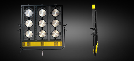 ●?LUXED-9觀眾燈由9臺LUXED-S聚光燈矩陣式組合排列而成,根據(jù)不同的拍攝場景,也可組合成12頭、24頭,甚至任意燈頭數(shù)量組合,以達(dá)到場景的較好的照明效果,可以很方便的通過機(jī)柜電源及DMX控制臺進(jìn)行批量遠(yuǎn)距離控制。